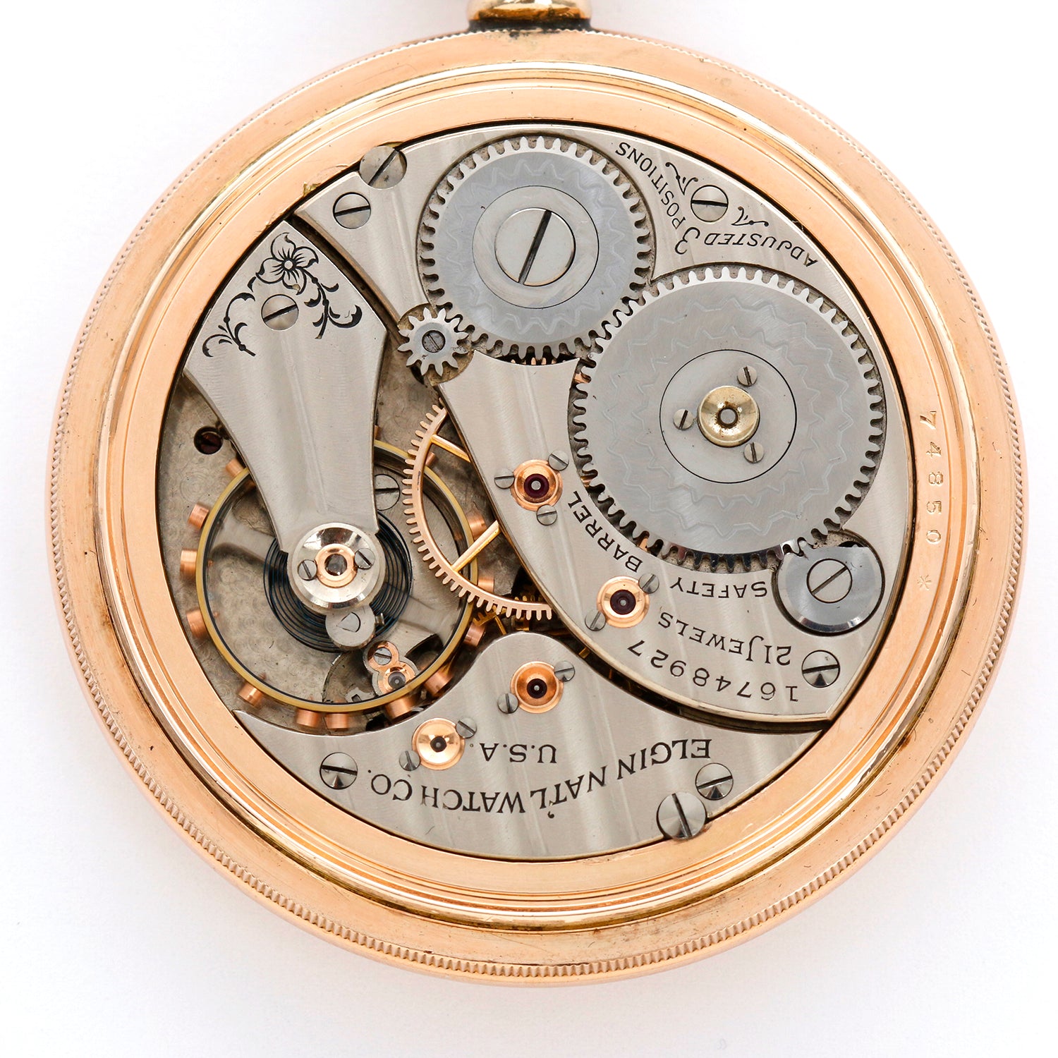 Elgin Railroad 21 Jewel Veritas 18 Size Up Down Wind Indicator - Manual Winding. Grade Model 8 Grade 239 Class A Railroad Approved Pocket Watch. Ornately Engraved Screw Back And Bezel B&B Royal 20 Year Case. Circa 1901.